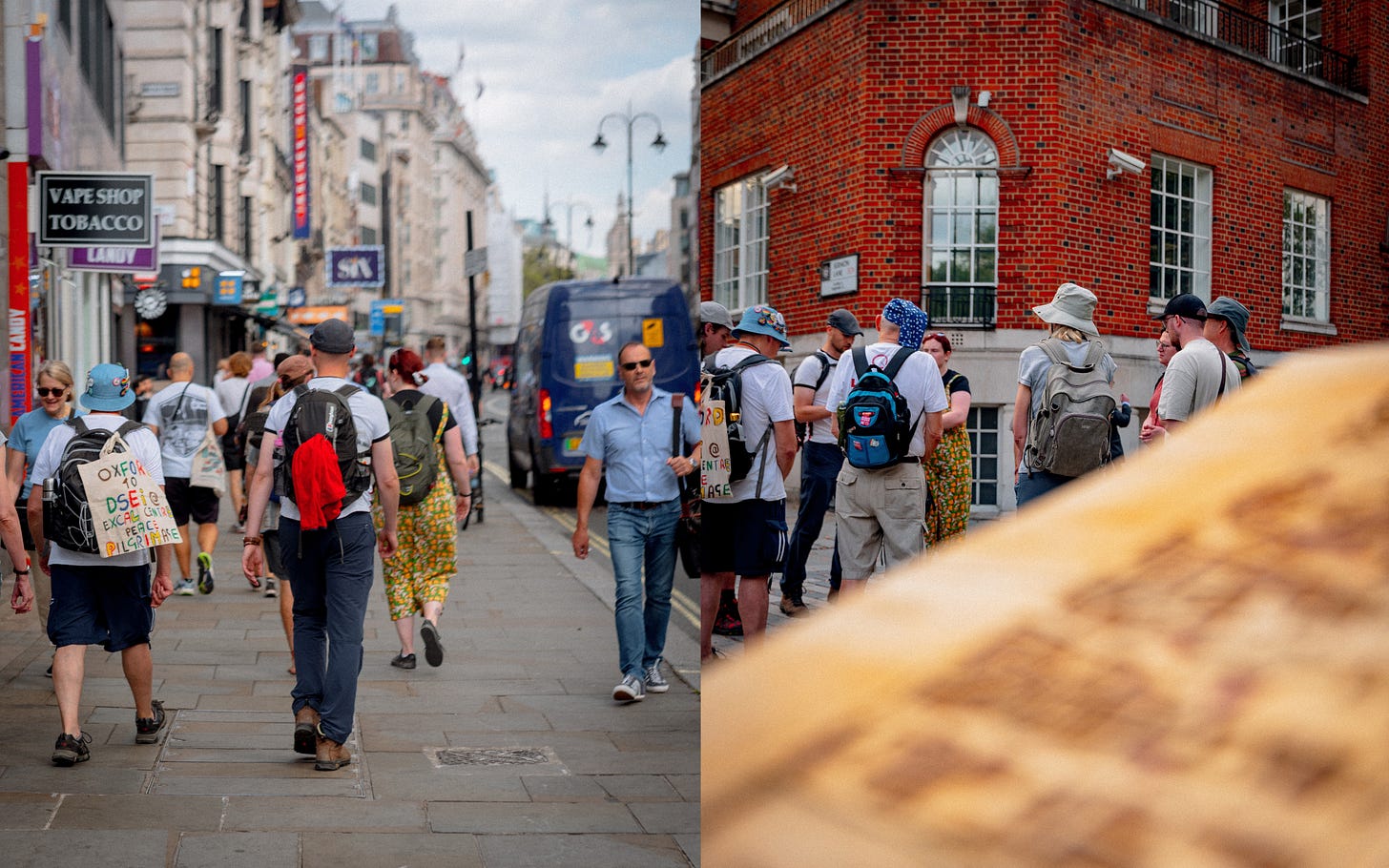 In 2023, and in pursuit of that question, a group of wanderers set out from Oxford, arriving in London six days later in time to join a candlelit vigil outside the DSEi Arms Fair.